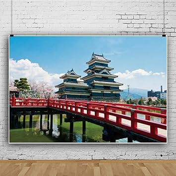 Dorcev Background For Traditional Japanese Castle Photography Backdrop Sunny Sky Japanese Style Building Red Bridge Asian Travel Themed Birthday Party Wedding Portrait Photo Studio Props Camera Photo Amazon Com